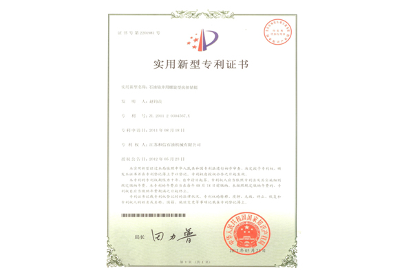 实用新型专利证书3 发布时间: 2017-07-05 21:36:23 发布网站: 中国管道招标网
